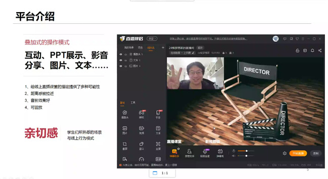 影视编导专业教师罗懿以所授课程《视听语言》为例,从直播平台的选择、课堂直播过程、遇到的问题与困难三个方面分享了他的线上授课经验。他表示,因课程有较多实操、案例解析内容、视频播放,在经过综合比较后,最终选择了斗鱼直播。该平台叠加式的操作模式将与学生之间隔时空的距离感被拉近,同时因为直播模式是学生熟悉的场景与线上行为模式,增强了亲切感。