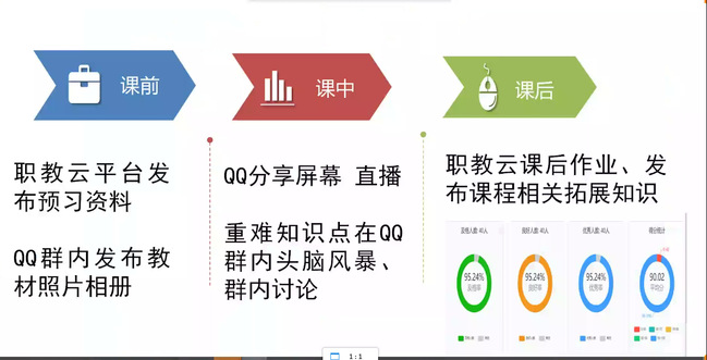 媒体营销专业教师李明讲述了她选择不同教学平台授课的“心路历程”,从最初的QQ屏幕分享,到职教云平台,再到腾讯课堂,各个平台各有优缺点,最终找了适合她课程的模式——通过职教云进行教学资源提取,利用腾讯课堂进行知识点讲解,辅以QQ群讨论、互动,使整个课堂更丰富、更生动。
