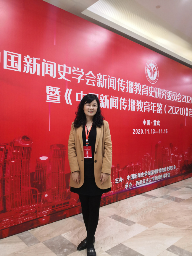 彭爱萍教授在《中国新闻传播教育年鉴(2020)》首发式现场留影
