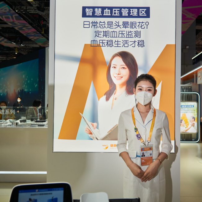 医疗行业展区是进博会中的热点地区。温佳瑞在工作第一天,就感受到参观人员的满满热情。当天来自医疗机构、机场以及医疗器械公司的参观者和媒体记者把展台围得水泄不通,温佳瑞一边耐心细致地向参观者介绍品牌和产品,一边有条不紊地为他们一一测量血压,让他们体验品牌最新款测血压机器。虽然参观的人群络绎不绝,但温佳瑞从始至终保持从容不迫、富有亲和力的服务态度,这给参观者留下良好的印象。