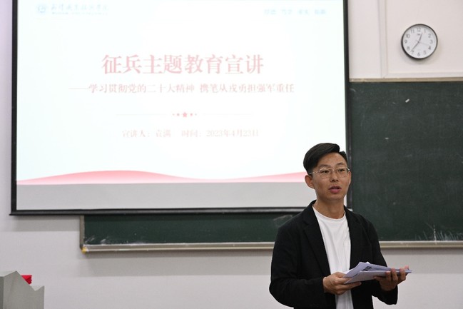 武职网讯(通讯员 袁满 大学生记者 陈思琪 易宇阳 韩玉麟)“学习强军思想 、建功强军事业。”2023年4月23日中午12时,文化与传媒学院在凌峰楼A512组织开展“勇担强军重任、书写绚烂青春”征兵宣传主题教育活动。全体辅导员、班主任,以及60余名同学参加活动。