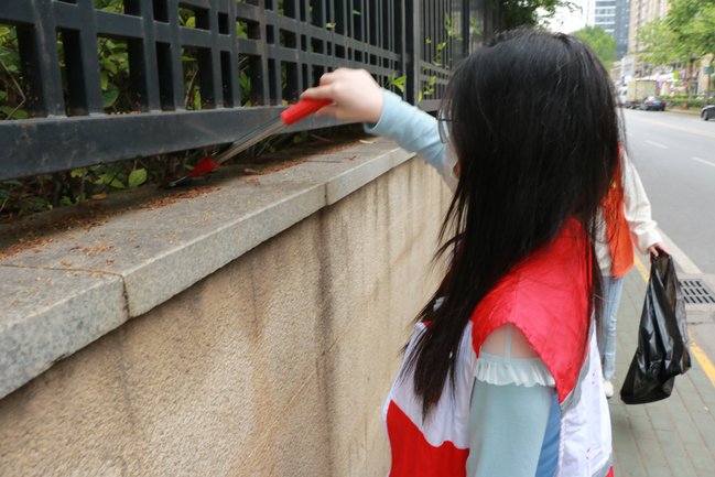 志愿者彭靓靓说:“正值‘五一’国际劳动节来临之际,我们身体力行为社区做好环境美化服务,我认为这是十分有意义的。”